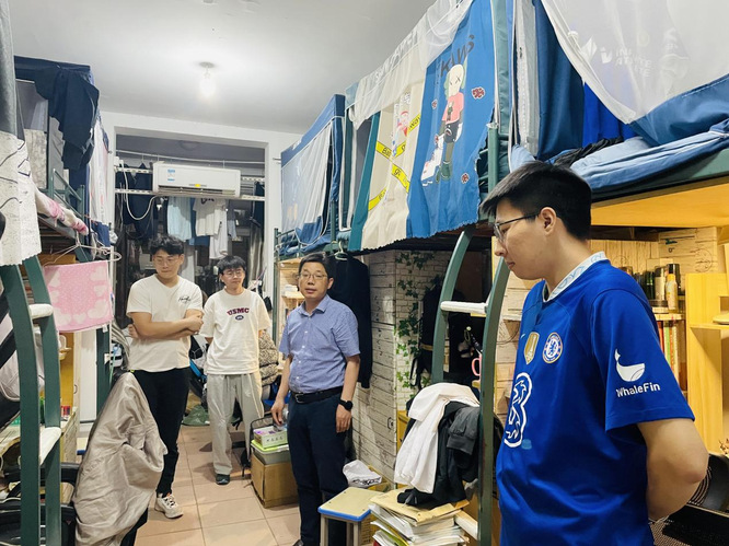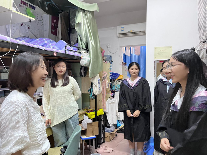 一声问候送温暖,关怀入寝以寄情。5月22日,经法学院党政领导带队深入学生社区走访毕业生寝室。走访过程中,学院领导和老师对毕业生的升学就业状况、生活近况、行程安排、面临困难、未来打算等进行了细致地了解。对已经成功升学和签约的同学表示祝贺,对尚未就业和准备二战的同学提出鼓励和建议,详细解答了毕业生的诸多问题,并向他们送上美好的毕业祝福。老师们叮嘱毕业生,希望即将就业的同学们在新的岗位上积极进取,踏实工作,争取取得更大的成绩;升学的同学们在科研学习的道路上奋力拼搏,早日为国家建设贡献力量;对暂未就业的同学能够根据自身实际情况树立理性的就业、择业观,调整心态和期望值,主动参加招聘会,早日实现就业。同学们纷纷表示一定会谨记领导老师们的谆谆教诲,坚定理想信念,发挥“经法智慧”,做出“经法贡献”,书写人生新篇章。