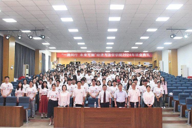 时光飞逝,岁月荏苒,骊歌轻起,毕业将至。5月20上午,经法学院在求实楼报告厅隆重举行2024届“一路同行 未来可期”毕业典礼。典礼上,院党委书记石庭宣读2024年省、校级优秀毕业生表彰决定,鼓励大家珍惜韶华,勇毅前行,以青春之姿,书写奋进答卷。教师和学生代表回顾四年的点滴日常,分享每个感动瞬间,希望大家目有山川,志存高远,乐观豁达,勇往直前。院长徐志仓致辞欢送,让毕业生们感受到师生之间真挚的情感,他表示希望同学们在发展中树立远大理想、在工作中磨练过硬本领、在生活中不断修身立德,未来无论走到哪里,无论在何种岗位,都要坚持用脚步丈量祖国大地,在融入“大我”中成就“小我”,脚踏实地,奋勇前进。