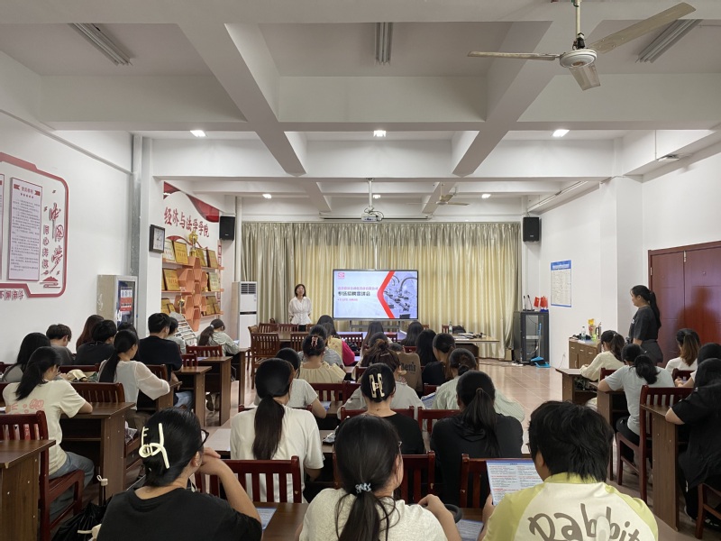 “就”在金秋,“职”面未来。为切实做好就业服务工作,搭建毕业生和企业供需双选平台,9月20日下午,经法学院在求实楼三楼会议室举办南京德昇自动化设备有限公司校园专场招聘宣讲会。南京德昇自动化设备有限公司业务部总经理戴娣、业务经理陈阿杏来校作宣讲,我院2025届国际经济与贸易专业70余名学生参会。