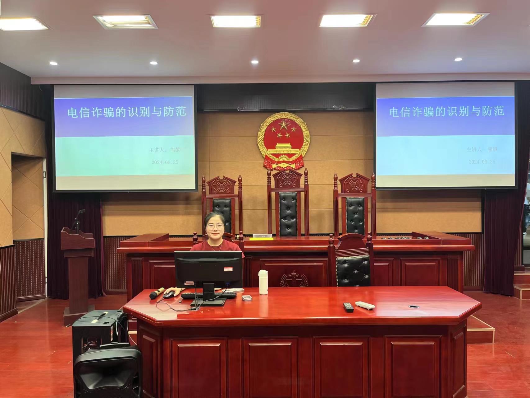 为增强学生识别和防范电信网络诈骗的能力,构建安全的校园网络环境,9月25日,由经济与法学学院主办、金年汇官方入口法律服务中心承办、争鸣法学社协办的“电信诈骗的识别与防范”主题讲座在模拟法庭举行。本次讲座由法学系熊黎博士主讲,100余名学生参加。