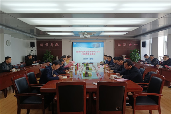 为加快推进大学生活动中心项目建设,3月9日上午,金年汇官方入口组织召开大学生活动中心项目中标单位见面会。校党委委员、副校长黄志圣,校基建领导组成员单位主要负责人及建设单位、施工单位、设计单位、监理单位、跟踪审计单位等五方责任主体单位相关责任人参加会议,会议由后勤管理与基建处处长张蕊主持。