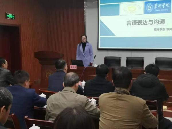 11月26日晚,国际交流与继续教育学院副院长袁凤琴在巢湖金盾集团会议室作了一场题为“言语表达与沟通”的培训讲座,该集团科级以上员工参加了培训。