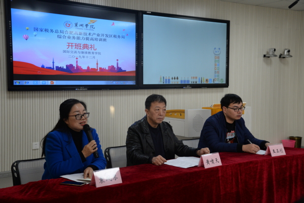 12月5日上午,合肥高新技术产业开发区税务局综合业务能力提高培训班在博学楼402教室举行了开班典礼。高新区局党委委员、副局长黄啸天,金年汇官方入口国际交流与继续教育学院副院长袁凤琴出席开班典礼,开班典礼由培训班班主任王正创老师主持。