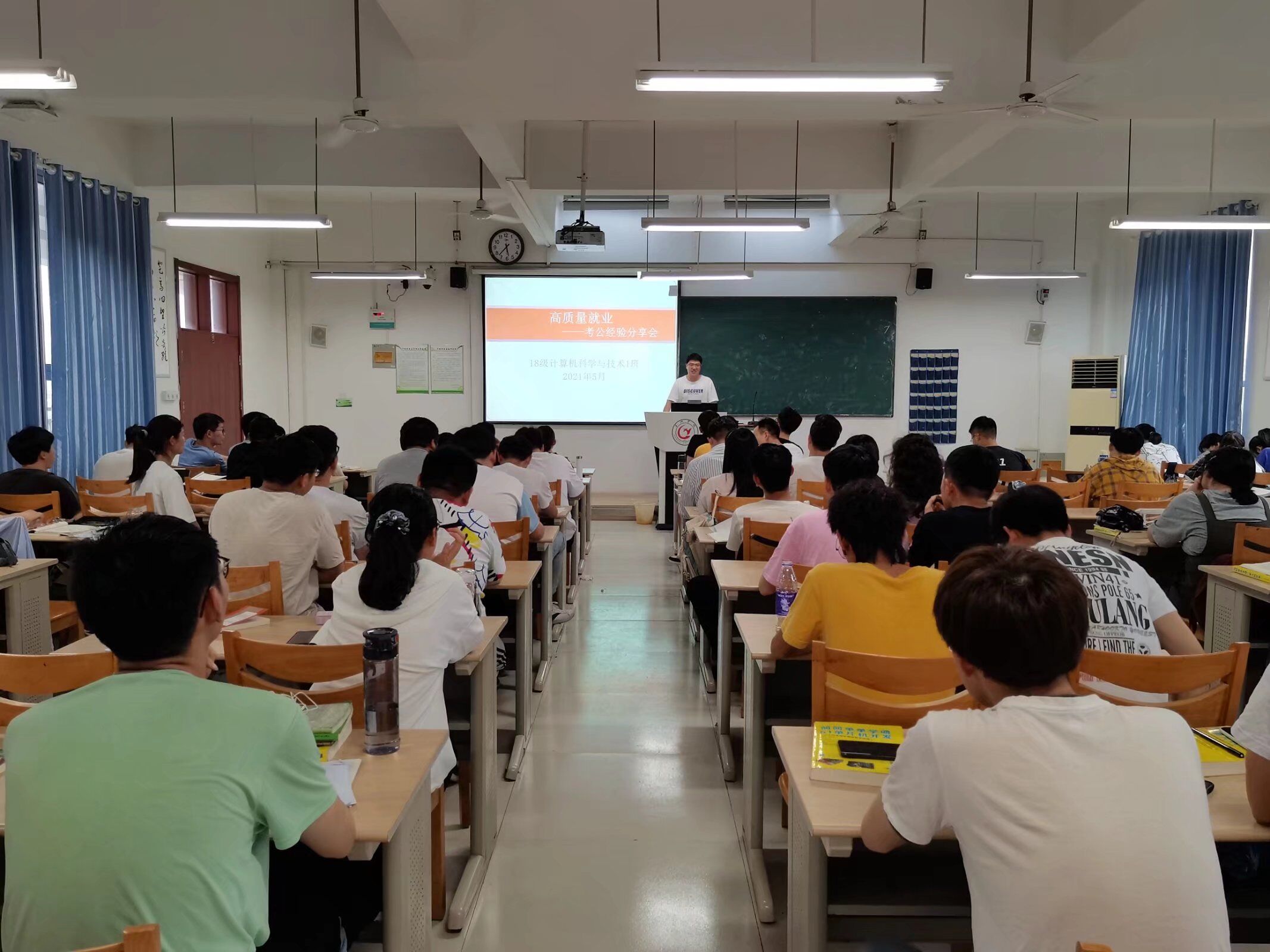 为提高同学们对就业方面知识的了解,18级计科一班于5月11日18:15在慎思楼北103教室召开高质量就业——考公经验分享会。本次分享会由17计科考公学子孙欣欣主讲,18级计科一班全体同学参与。
