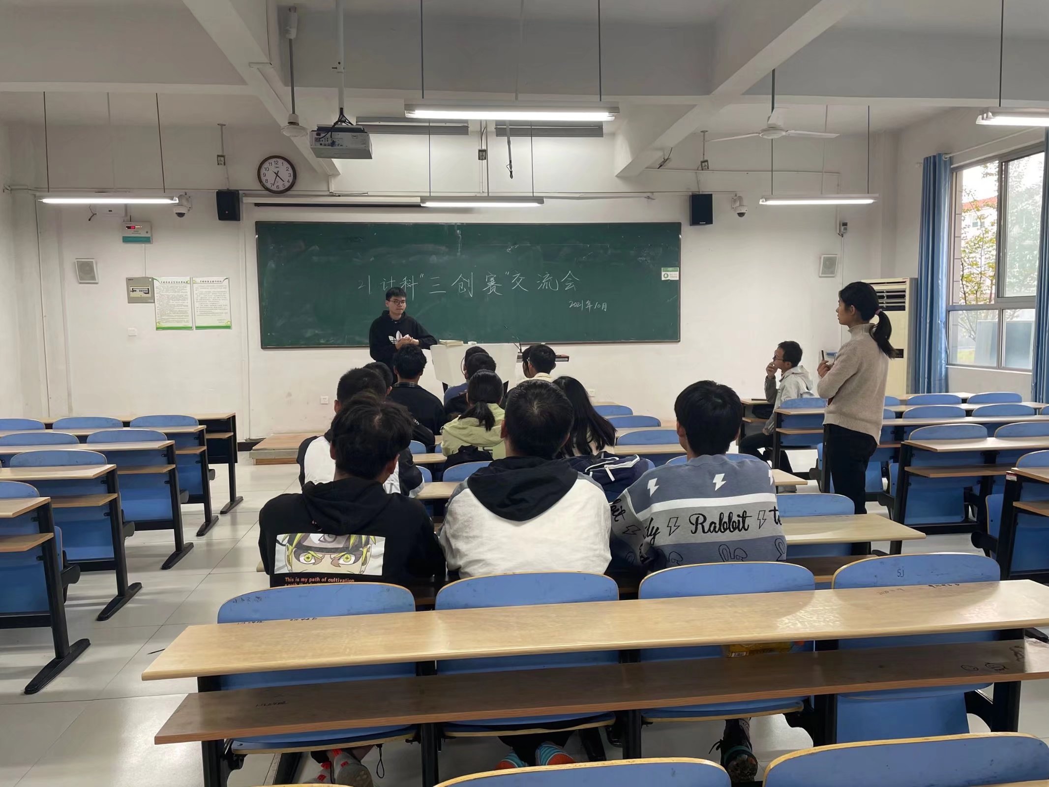 为了提高学生的创新、创业意识,加强动手能力, 18级计科专业与21级计科专业部分同学于11月12日下午4:00在慎思楼北102组织了“三创赛”比赛经验分享会,此次会议由辅导员陈文静主持,邀请了在“挑战杯”“互联网+创新创业”等比赛中获得优异成绩的学长倪锦涛进行经验交流。