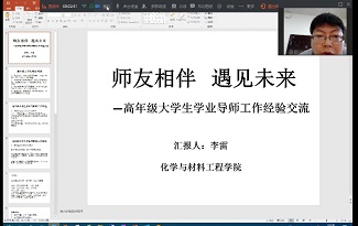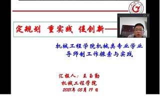 活动伊始,胡传双对活动目的、意义、主题及我校学业导师工作开展情况作了简要说明。随后,化材学院李雷老师、经法学院王小骄副教授、机械学院王玉勤副教授、艺术学院田世彬副教授、文教学院副院长李曙光和电子学院副院长叶松依次作了题为《师友相伴遇见未来》《以提高学生综合素养为要义开展学业指导》《定规划重实践促创新—机械类专业学业导师制工作探索与实践》《以服务为宗旨以项目为驱动以育人为目标—培养新时代“会好好做事”的应用型影视动画人才》《兴“文”化人 重“教”育人》和《贯彻专业认证理念 落实学业导师制度》的主题发言。他们分别从教师和学院角度介绍了在学业导师工作中的有益经验和典型做法,并重点围绕学业导师制度落实、工作方式方法、取得的成效、存在的问题等开展交流研讨,共享学业导师工作经验。