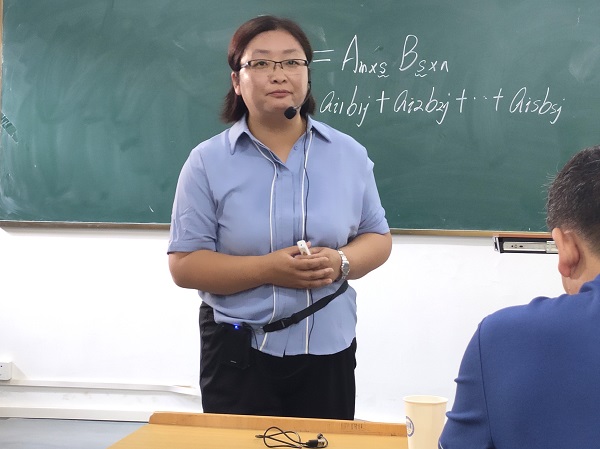 随后曾老师以《矩阵乘法》为例作了教学示范,并结合多年的教学经验和参赛心得,从备赛阶段、比赛阶段、注意事项和体会与收获四个方面作了经验交流。她指出备赛要认真阅读比赛相关文件、提取重要信息、注意材料准备和课堂教学节段PPT设计;比赛阶段要注意比赛流程、赛前熟悉现场环境、比赛现场等; 注意事项重点从个人信息、错别字、屏幕位置、交互式投影、时间控制、教态作了介绍;最后在体会与收获中分享了雄心壮志、才疏学浅、江郎才尽、破茧成蝶心态历程。另外在教学设计、板书设计、亮点和特色以及内容前沿性、高阶性和创新性,在教学形式趣味性等方面作了细致的分享。数统学院赵开斌院长对曾老师的名师教学示范作了小结,认为曾老师的示范和讲解思路清晰、内容丰富、经验非常值得借鉴和学习。在交流互动环节老师们纷纷围绕相关问题向曾老师进行了请教和交流。