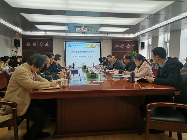 各二级学院教学督导代表围绕2021年度工作开展情况、发现的优点、存在的不足及下一步工作打算进行了现场汇报,并就教师教学能力提升、课堂过程监控及教师教学评价等纷纷建言献策。校教学督导组组长李瑛教授全面总结了2021年度学校教学督导工作,既肯定了工作的成绩,也指出了工作中存在的问题。同时,她从工作理念、工作重点和工作方式等对新学期教学督导工作提出设想。