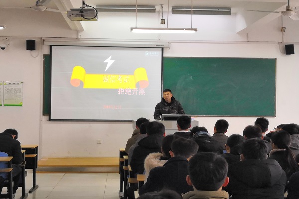12月28日上午,16级材控一班和二班在慎思楼北202教室召开“积极备考,诚信考试”主题班会。16材控一班和二班全体同学参加,班会由辅导员陈浩主持。