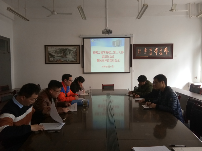 3月11日,机械工程学院教工第三支部在党员活动室召开组织生活会暨民主评议党员会议。教工第三支部全体党员参加了会议,会议由支部书记王玉勤主持。