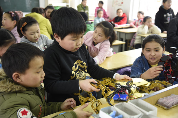 表演活动结束后,科普活动志愿者赴班级和小朋友们进行了近距离的展示,小学生们看到会飞的火箭、会动的机器人,好奇心不断,激发了小学生们对科学小知识的兴趣,有助于小学生们的启蒙教育。