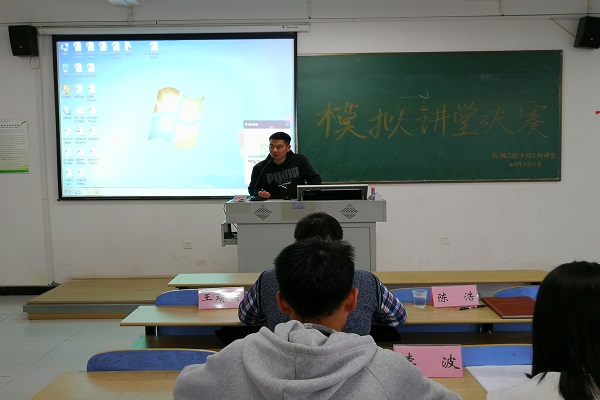3月27日下午,机械工程学院举办的“七彩课堂”模拟讲堂大赛决赛在慎思楼北203举行。经过前期宣传发动,预赛,共有24人顺利进入决赛。决赛由七彩课堂指导教师陈浩、机械工程学院辅导员王靖国担任评委。