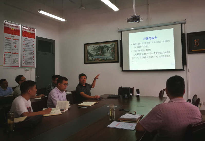 集中学习后,教工第一党支部书记王可胜教授分享了参加“2019年全省高校‘双带头人’教师党支部书记示范培训班”的心得和体会,并结合主题教育和支部工作实际,进行了研讨交流。他表示,培训会令他学到很多、受益匪浅。党员干部要加强理论学习,以理论滋养初心,增强“四个意识”、坚定“四个自信”,做到“两个维护”。支部应当在“两学一做”学习教育常态化制度化中落实“三会一课”制度,这样才能凝心聚力,开展教学科研工作。王书记强调每一位教师都应做到“不忘初心、牢记使命”,教师的初心就是育人,教师的使命就是要培养合格的社会主义建设者和接班人。最后,王书记就支部建设提出了自己的想法,他强调支部建设更应该结合教研室自身特点做出一些特色活动,做到“一手抓党建、一手抓科研”,争取做样板党支部、示范党支部。