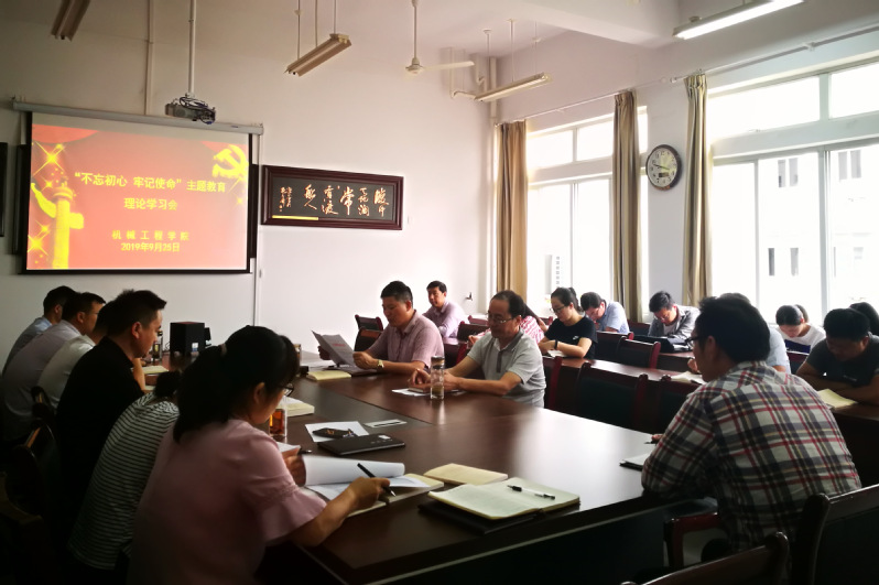 为持续深入学习习近平总书记在“不忘初心、牢记使命”主题教育工作会议上的重要讲话精神,贯彻落实中央、省委及学校“不忘初心、牢记使命”主题教育会议精神,9月25日下午,机械工程学院在院会议室开展“不忘初心、牢记使命”主题教育理论学习会。全体党员参加了学习会议,会议由党总支书记何照泽主持。