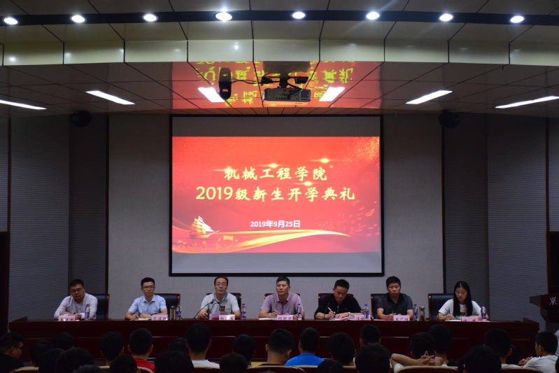 9月25日中午,机械工程学院2019级新生开学典礼在致知楼报告厅举行。院党总支书记何照泽、院长杨汉生、总支副书记、副院长汪世义、团总支书记苏洁红、教师代表王可胜、辅导员王靖国和方钱、老生代表丁泽文出席,2019级全体同学参加。开学典礼由汪世义主持。