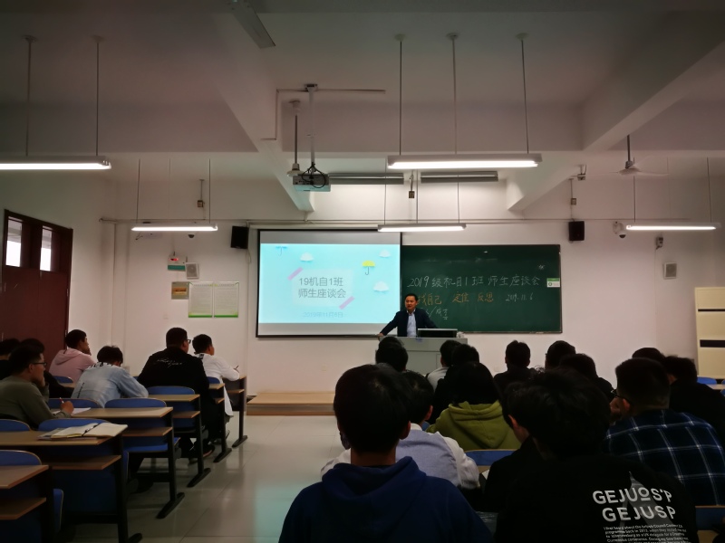 为推进“不忘初心、牢记使命”主题教育,构建大学生思想政治教育全员化模式,帮助学生明确时代责任和历史使命,树立正确的世界观、人生观、价值观,学校领导干部积极落实联系班级制度,主动走近学生。 11月6日下午,副校长徐柳凡参加2019级机械设计制造及其自动化专业1班的主题班会,班会主题是“我、大学、专业”,班会由辅导员方钱主持。