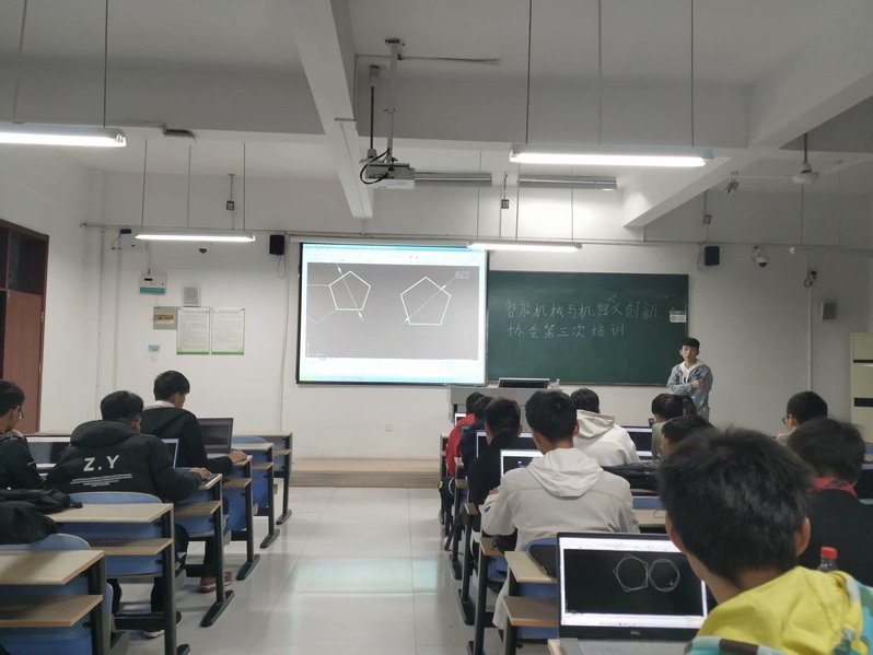 为提高智能机械与机器人创新协会会员对CAD软件的应用,提高会员的整体画图能力,智能机械与机器人创新协会与11月23日晚在慎思楼北301举行第三次CAD培训会,本次会议由会长王胜兵主讲,全体会员与会。
