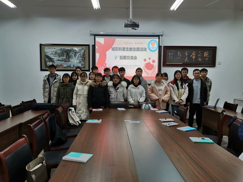 12月17日,机械工程学院团总支青年志愿者协会在致知楼二楼团总支会议室召开本学期城东小学科普支教总结会。本次会议由机械青协副会长傅德曹主持,支教志愿者参加会议。