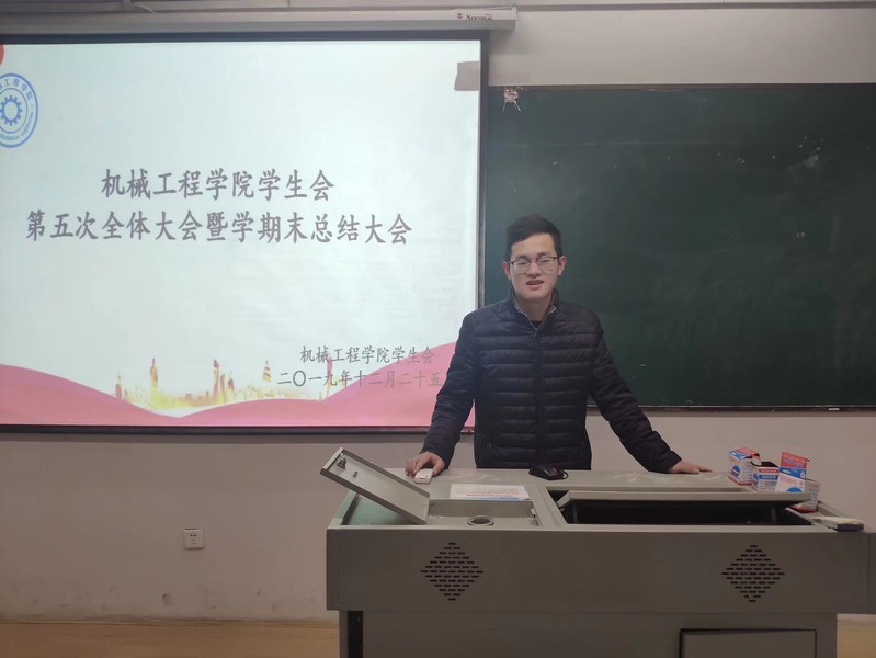 2019年12月25日中午,机械工程学院于慎思楼中204教室召开学生会第五次全体大会暨学期末总结大会,学生会全体成员参会,会议由机械工程学院学生会主席汪敏捷主持。