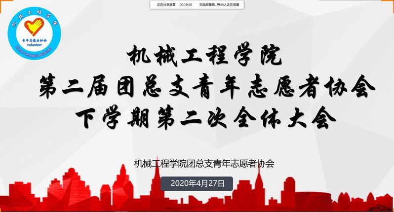 为提高全体成员工作积极性,总结近期工作,机械工程学院团总支青年志愿者协会于2020年4月27号12:30在线上召开2019—2020学年第二学期第二次全体大会。本次会议由机械青协副会长傅德曹主持,机械青协全体成员参会。