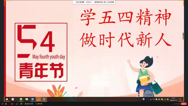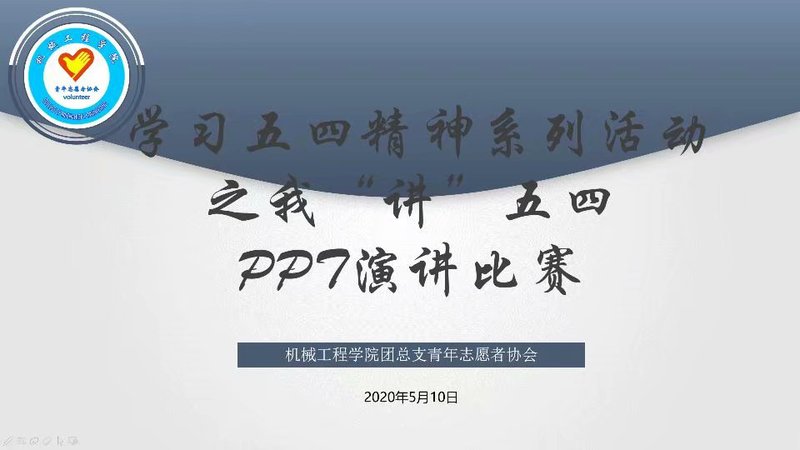 为纪念五四青年节,发扬五四精神,机械工程学院团总支青年志愿者协会于2020年5月10日下午举办“学习五四精神,争做有为青年”系列活动之我“讲”五四的PPT线上演讲比赛。出席本次比赛的评委有机械青协副会长李恩、宣传部部长丁森林、实践部部长崔召杰以及调研部部长梁修宇。