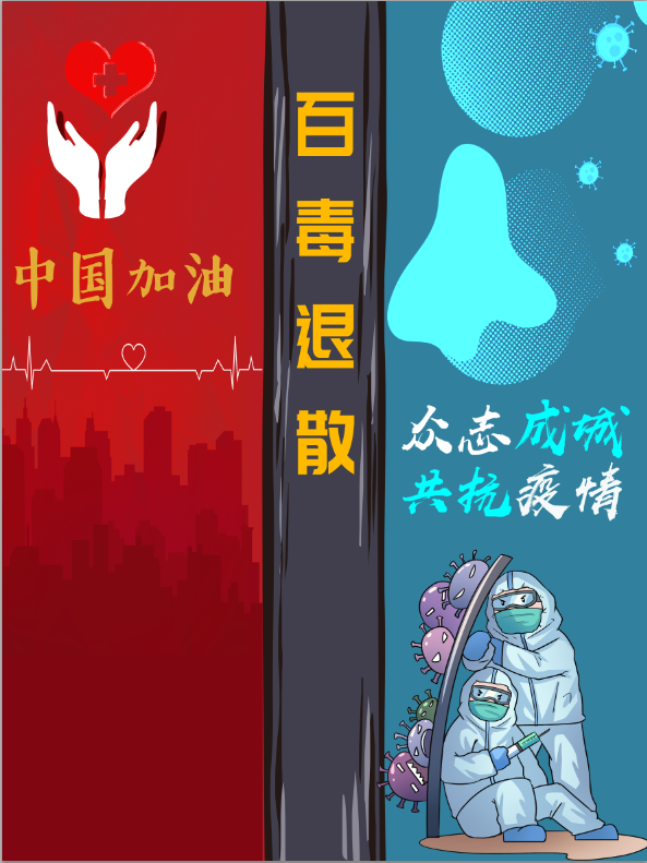 海报评比活动最为学生欢迎,学生通过制作海报展现自身对生命的认识与感悟,围绕“众志成城,共抗疫情”主题,结合自己生活中的事例,用最绚丽的图案、最生动的语言文字、最真实的情感创作海报,这样的匠心作品充 分展示了新时代大学生热爱生活、感恩社会的积极人生态度。