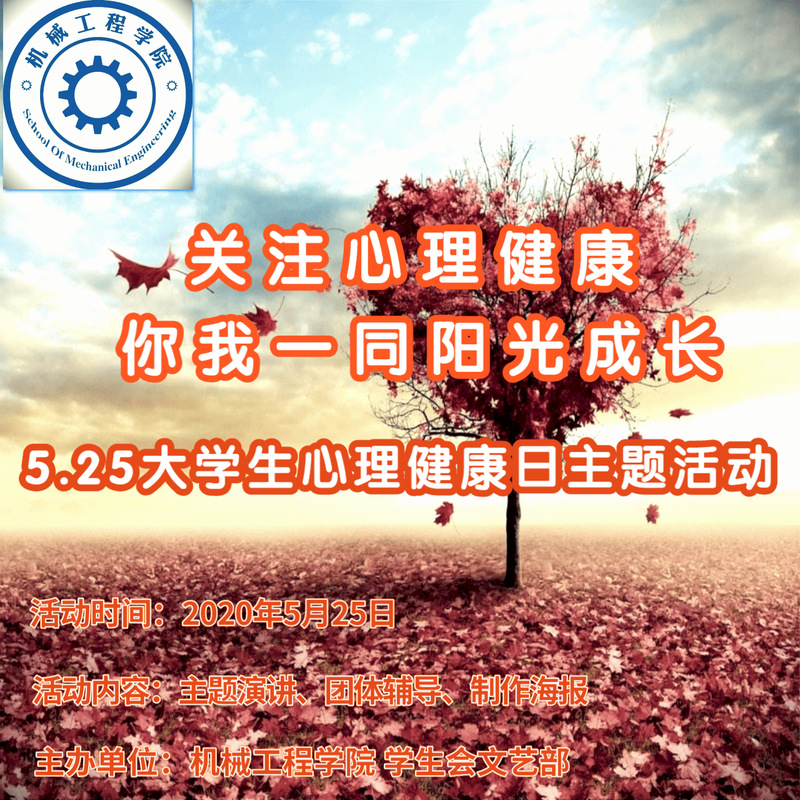 为培养大学生自尊自爱、理性平和的积极心态,引导大学生有机地把自我发展与时代呼唤相结合,促进大学生健康成长,机械工程学院团总支学生会在心理健康月开展了系列活动。