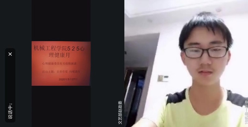 此次活动共分为3个部分:一是在线上开展“亲善有爱,向暖谐行”主题演讲比赛;二是各班级心理委员在本班开展心理健康讲座;三是“众志成城,共抗疫情”海报评比。