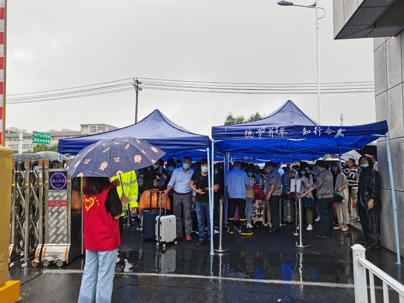 来自滁州全椒的大一新生郑欣的母亲在校门外静静地等待,当问到对家长不能入校的规定是否有意见时,她回答道:“学校基于疫情防控需要所做的规定,我们作为家长不仅理解,也很赞同。而且校内有那么多志愿者帮忙,我们也放心孩子独自进校报到。”“孩子是在我们家长和老师的建议下报考的巢湖学院,刚才孩子非常开心地打来电话,说这是一个非常正确地选择。”郑欣的母亲说,看到孩子已经顺利入校,也将放心返程。
