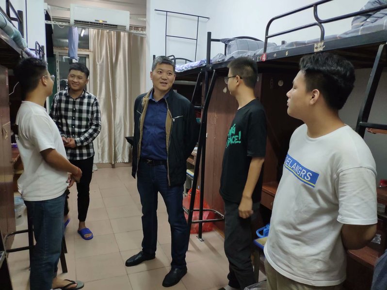 当天晚上,学院党委书记何照泽和辅导员陈浩、兰学强、方钱走进新生宿舍,与新生亲切交谈,了解新生情况,就新生生源地,入学报到是否顺利,对校园环境、住宿环境感受如何等问题进行了询问。交谈中,何照泽希望新生遇到困惑、困难及时跟辅导员、学长学姐反映沟通。走访中,何照泽嘱咐随行的新生辅导员和学生会干事要多多指导、关心新生,给予他们各方面的帮助,尽最大的努力帮助新生尽快适应大学生活,让家长放心、学生安心。