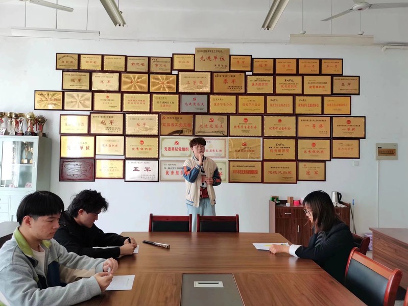 为丰富同学们的课余文化生活,展示青年学子积极向上的精神风貌,2021年3月26日,机械工程学院于团总支办公室举行“十佳歌手”选拔赛。本次赛事评委分别是学生会轮值主席刘阳阳、学习部负责人储涵、办公室负责人曾炜和实践部负责人祝绍英。本次比赛由实践部干事杨猛主持。