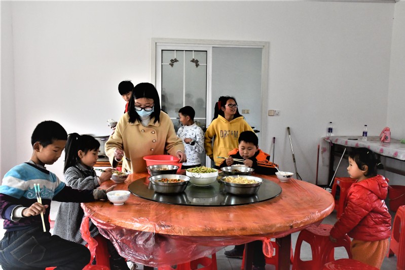 中午志愿者为留守儿童准备了丰盛的午餐,荤素搭配,色香味俱全,留守儿童都自觉践行“光盘行动”。