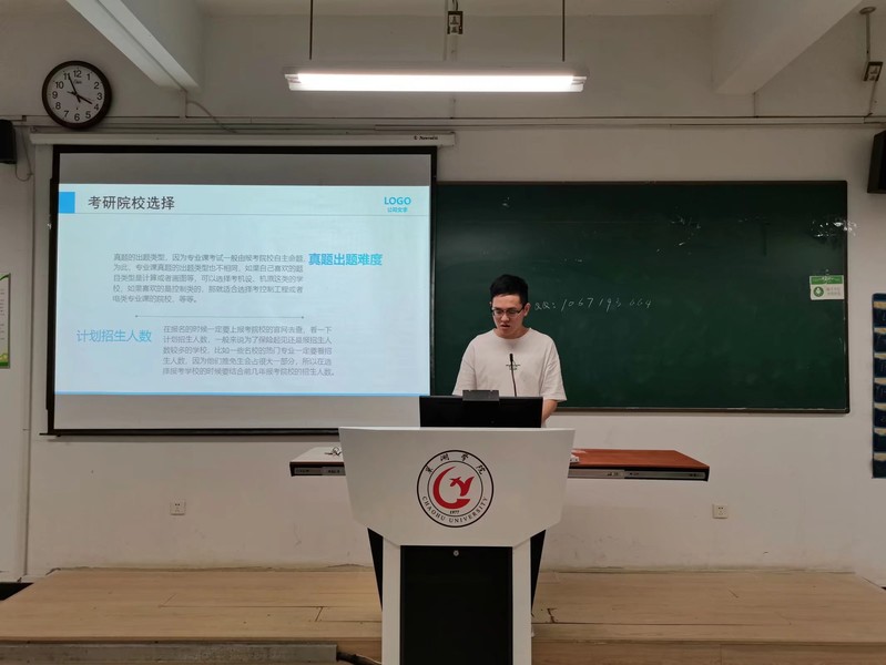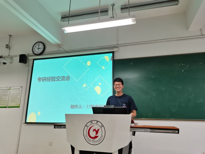 17机自屠厚德,被中国计量大学录取,他重点讲解了考研院校的选择问题,给出了考研时间的规划,推荐了自己在考研中用到的书籍。他表示自己在大学四年里并没有很突出的表现,成绩也平平,但是考研的路上坚持不懈,仍可能考取理想的高校,鼓励同学们一定要充满信心,勇敢拼搏。