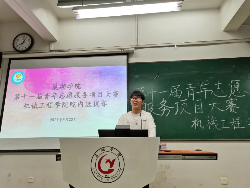为提升学院志愿服务质量和水平,传承弘扬时代雷锋精神,机械工程学院团总支青年志愿者协会于5月23日在慎思楼中103教室举办青年志愿服务项目大赛,本次比赛特邀学院团总支副书记方钱、第三届机械青协负责人申涛、刘泽辉、学院学生会学习部负责人储涵担任本次比赛评委。