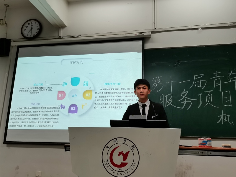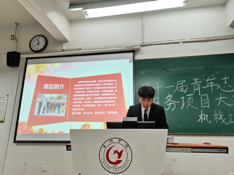 比赛中,6支参赛队伍的主讲人分别在各自项目的内容、意义、创新性等方面做出介绍,并对评委老师提出的问题给出详细回答。“一院一镇一品”志愿服务团、校园科技行服务团、七彩课堂支教服务团、城东科普支教服务团、阳光益行服务团、党史学习教育宣传团等志愿项目,内容充实,形式多样,将专业特色与志愿服务紧密结合,既有传承性项目,也有创新性项目,每一个都令人眼前一亮。舞台上的一句句讲解,使师生们感受到志愿者心中的热忱;PPT上播放的一帧帧照片,让观众们看到受助者眼底的星光。从网上到线下,从学校到烔炀镇,通过负责人的展示,我们了解到,每个项目的背后,有着专业的培训、严格的审核,筛选、评估、反思、改进……而服务社会、传递温暖的初心,便是辛苦工作与项目进展的不竭动力。汇报在大力弘扬“团结,友爱,互助,奉献”的志愿者精神同时,充分展现了机械学子坚持学以致用确保知行合一的优良品质和作风。