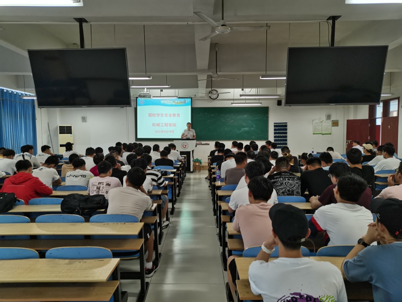 为做好留校学生各项工作,机械工程学院高度重视,7月13日,学院召开留校学生党政联席专题会议,对暑期留校学生工作做了部署和安排;7月15日,学院在慎思楼中101教室召开暑期留校学生安全教育专题会议,学院党委书记何照泽出席会议,会议由学院团总支书记苏洁红主持,教师代表邢刚、辅导员代表方钱、全体留校学生参加了会议。