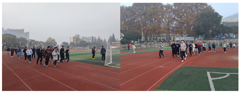 跑出阳光,跑出自信。诵读完毕,各班便开展晨跑活动,此次晨跑活动由各班班长带队,同学们通过“学史明理、学史增信、学史崇德、学史力行”响亮有力的口号调整步伐,在队伍中相互帮助、彼此鼓励,坚持跑完1000米。井然有序的队列,铿锵有力的口号,成了冬季校园里一道绚丽的风景线。
