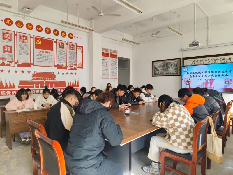 为增强机械青协成员之间的凝聚力,提高同学们工作的积极性,推进机械青协下学期工作的顺利开展,第四届机械工程学院团总支青年志愿者协会于2021年12月30日中午12:30在致知楼二楼团总支会议室召开第六次全体例会暨2021年下半年工作总结大会。本次会议由机械青协负责人李志华、季前程共同主持,青协全体成员参会。