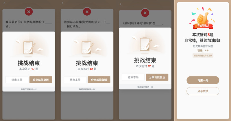 此次活动依托“学习强国”学习平台挑战答题功能开展,比赛期间不限挑战次数,以最好的成绩截图为准,活动结束时,参赛者需提交单次连续答对题数最高的挑战答题截图,学院按照答对题目数量多少进行排名。现场师生完成“挑战答题”后,及时将成绩截图,相互分享,营造了比拼赶学超的学习氛围,提高了师生学习的积极性、主动性,真正发挥“学习强国”学习平台作用,大家在理论学习中激发思想的活力、在闯关竞赛中感受学习的魅力。