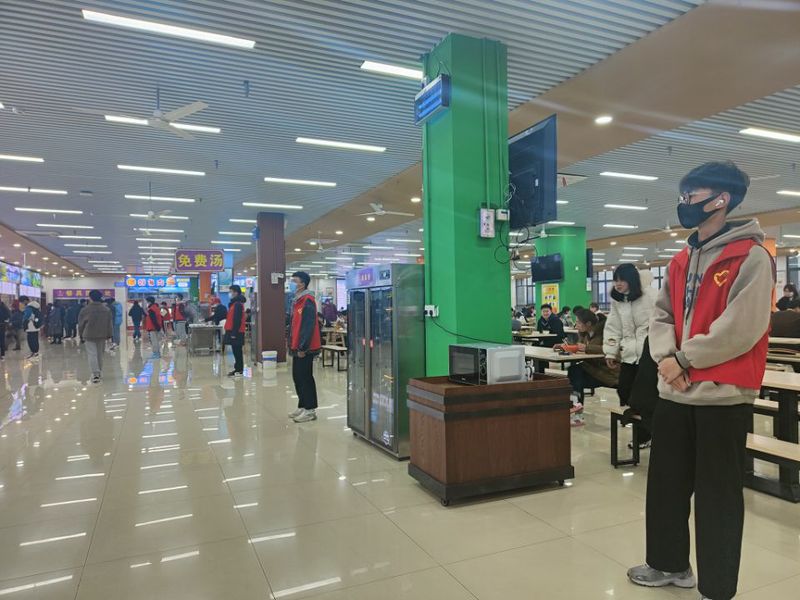 为落实科学、精准防控要求,抓好疫情防控,保障同学的就餐安全,机械工程学院持续开展以“疫情防控,志愿者与您同在”为主题的志愿服务活动,学生党员、入党积极分子、学生干部等积极报名志愿者,助力校园疫情防控。