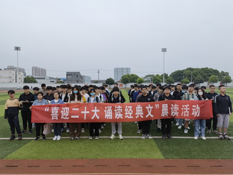 为迎接中国共产党第二十次全国代表大会胜利召开,引领青年学子养成诵读经典的良好习惯,自觉践行当代青年的责任与担当,2022年5月10日,机械工程学院开展“喜迎二十大,诵读经典文”晨读、晨跑活动。
