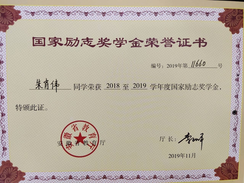 朱肖伟,男,汉族,2000年3月出生,中共党员,安徽省宿州市人,金年汇官方入口机械工程学院材料成型及控制工程专业2018级学生。在校期间,曾担任材控班级班长,机械工程学院学生第二党支部副书记,金年汇官方入口机械工程学院团总支副书记,机械工程学院学生会外联部部长。日常生活学习工作中,严于利己,自律自强,始终保持党员的先进性和纯洁性,充分发挥党员学生干部的模范带头作用。曾荣获国家励志奖学金,金年汇官方入口校级“三好学生”、“优秀共青团干部”、“优秀学生干部”“先进个人”“省级优秀毕业生”“2021年金年汇官方入口十佳大学生提名奖”等荣誉称号,取得安徽省第八届“挑战杯”大学生课外学术科技作品竞赛二等奖,安徽省“第二届大学生交通科技大赛”三等奖,金年汇官方入口第六次“互联网+”大学生创新创业大赛一等奖等奖。另外申请实用新型专利2项,发明专利1项,皖维科技项目1项。他所在的班级、团支部曾获“优秀团支部”“先进班集体”称号。2022年,考研录取到桂林理工大学材料科学与工程专业。