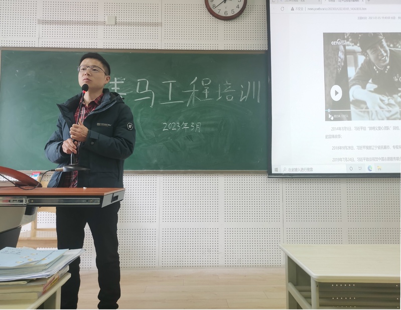 开展主题理论学习。3月18日,机械工程学院青马工程培训正式开班,学生第一党支部书记、团委书记苏洁红结合雷锋月系列活动,开展了“雷锋精神”主题理论学习。他以学习贯彻落实“习近平总书记对深入开展学雷锋活动的重要指示精神”作为切入点,剖析“雷锋精神”内涵,新时代大学生如何传承“雷锋精神”等方面进行了主题学习,提升了学员的政治素养,同时开展了“雷锋精神”为主题的团日活动及志愿服务活动。
