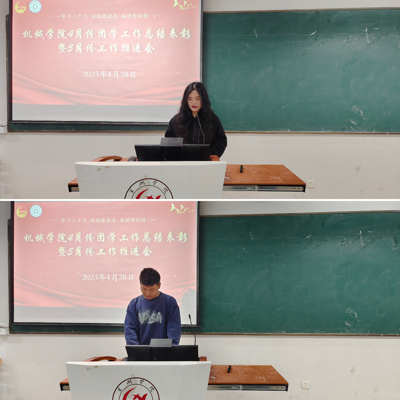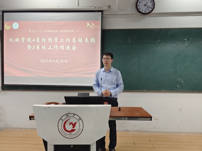 为深入学习习近平新时代中国特色社会主义思想,深入开展学习贯彻习近平新时代中国特色社会主义思想主题教育,4月28日中午,机械工程学院团委在慎中101教室举行机械工程学院团委4月份总结表彰暨5月份工作推进会,学院党委副书记、纪委书记李融出席会议,团委书记苏洁红、学生组织负责人等参加会议。会议由团委副书记方钱主持。