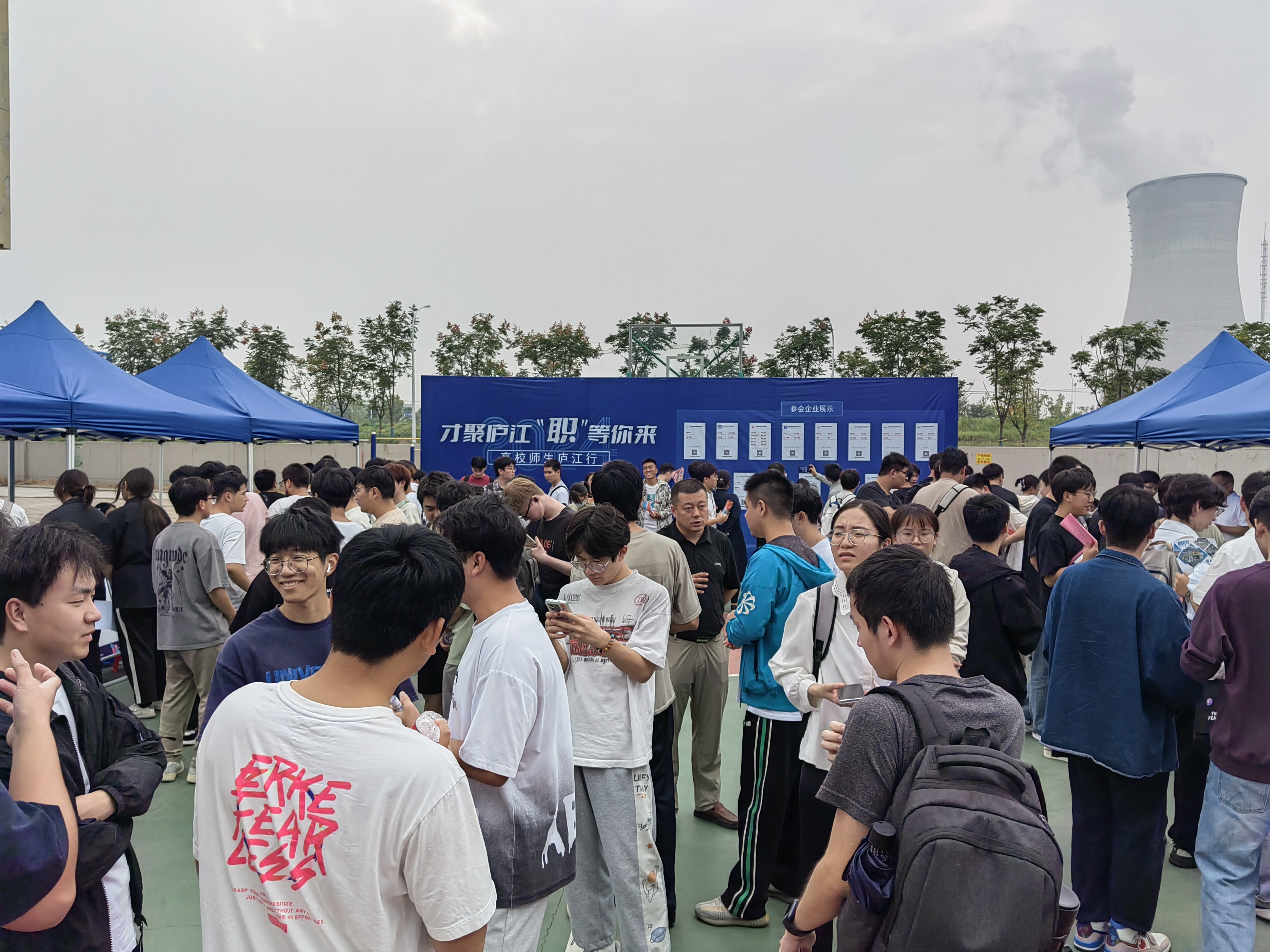专场对接会结束后,与会师生来到 “才聚庐江 ‘职’等你来”招聘会现场参与招聘。现场合肥国轩电池材料有限公司等17家优质企业带来岗位需求200多个,涵盖材料、化工、机械等多个专业,与参会学生专业匹配度高,毕业生积极与用人单位交流、投递简历,活动现场人头攒动,气氛热烈。