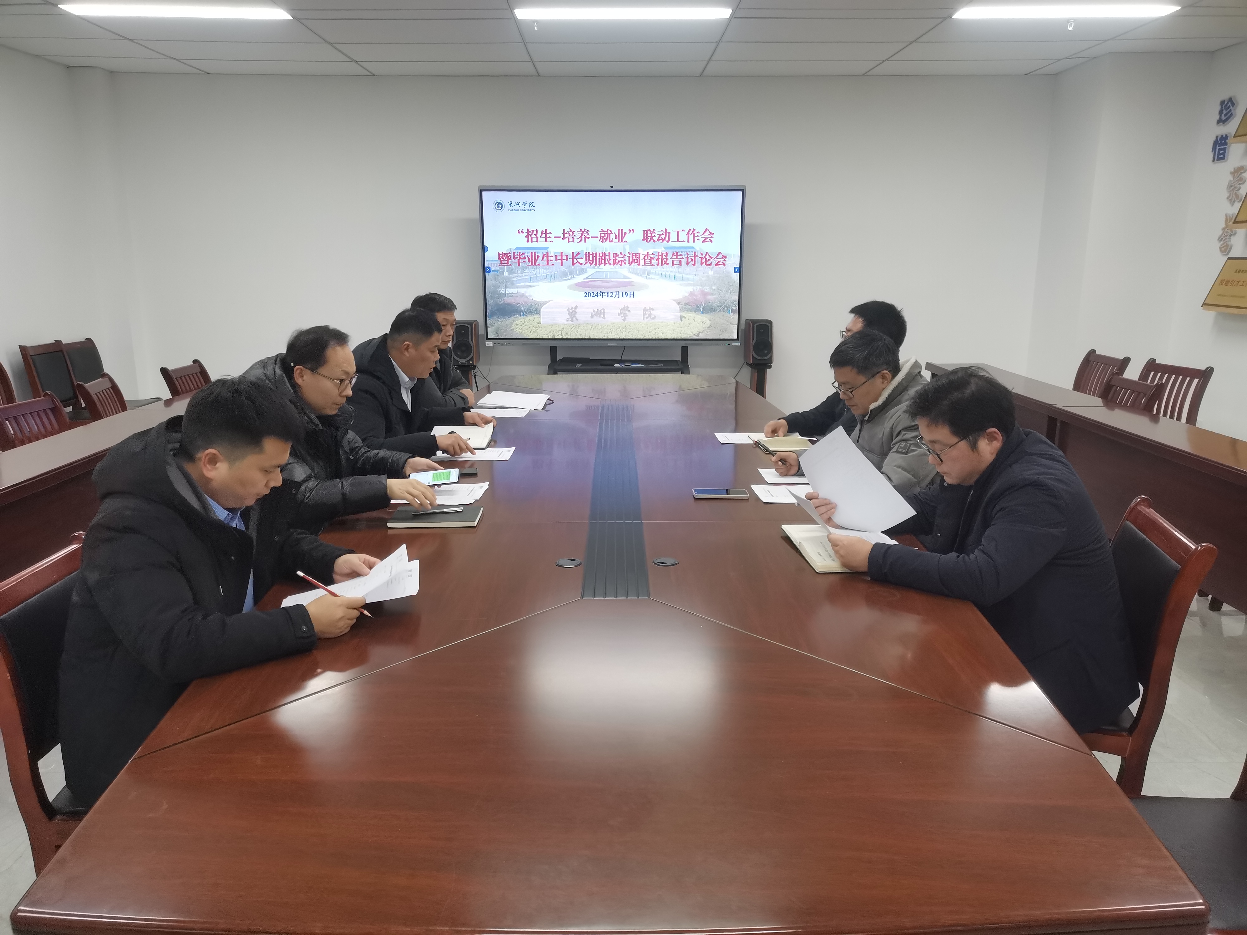 为进一步推进“招生-培养-就业”联动工作走深走实,不断夯实人才培养质量,助力高质量充分就业,12月19日下午,学工部、发规处、教务处和部分二级学院有关负责同志在学工部会议室共同召开2024年“招生-培养-就业”联动工作会暨毕业生中长期跟踪调查报告讨论会。