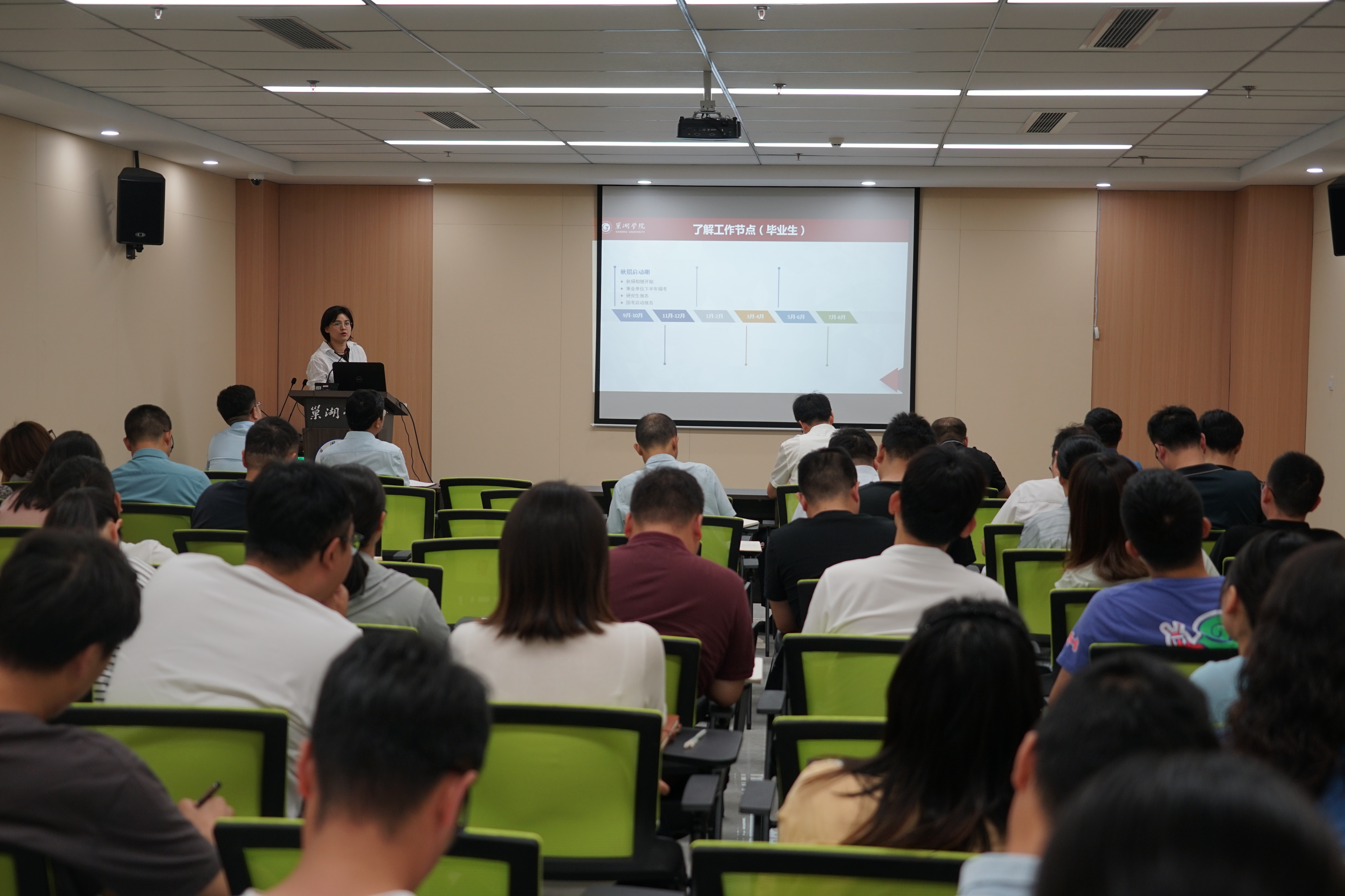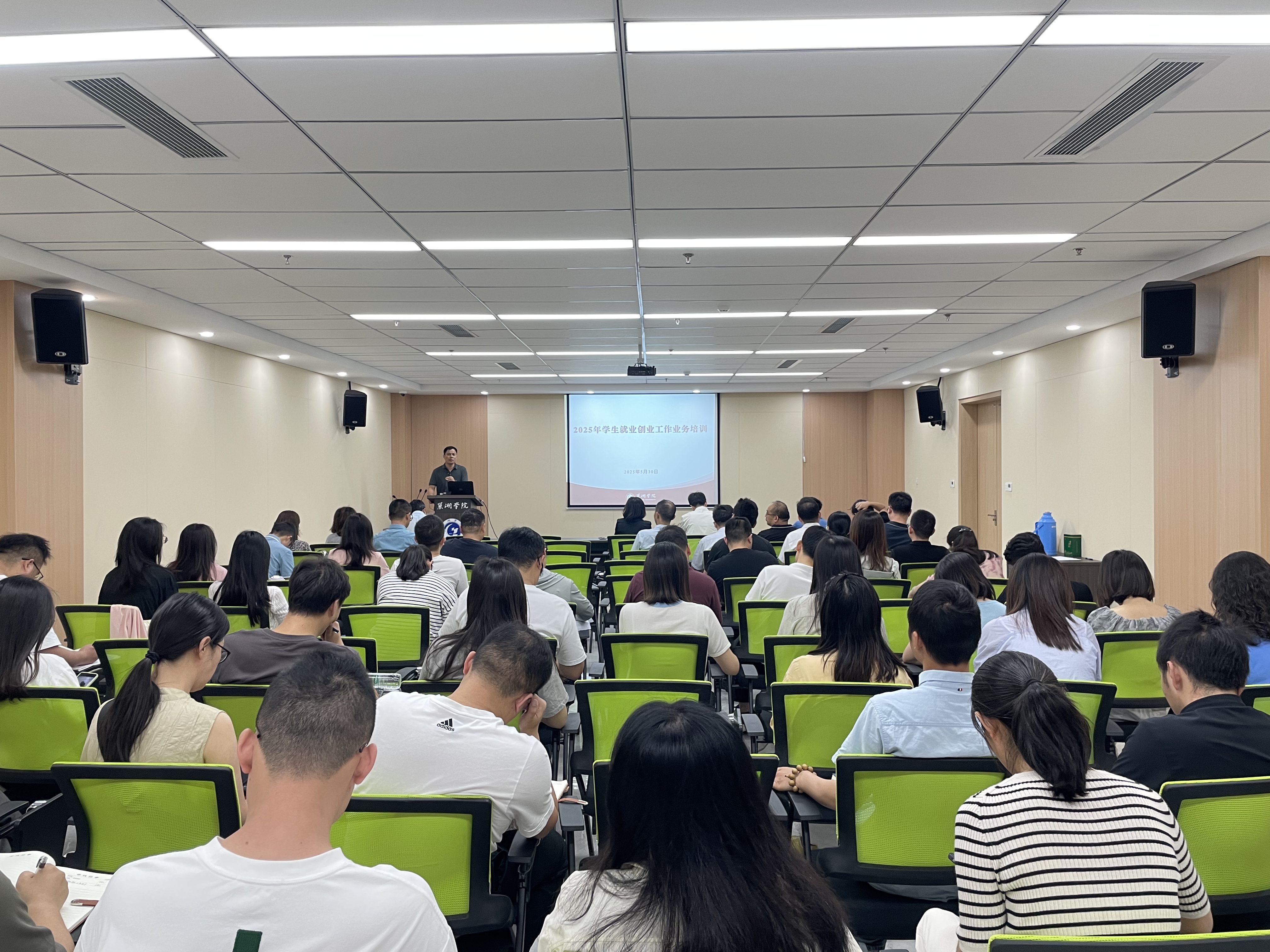 为深入贯彻落实党中央、国务院关于做好高校毕业生就业工作的决策部署,进一步加强就业创业工作师资队伍建设,提高就业创业指导与服务水平,切实推动学校学生就业创业工作高质量开展,5月30日上午,金年汇官方入口2025年学生就业创业工作业务培训会在大学生活动中心304党团教室举办。各二级学院党委副书记、就业联络员,2025届、2026届毕业班辅导员参加培训。会议由学工部部长华紫武主持。
