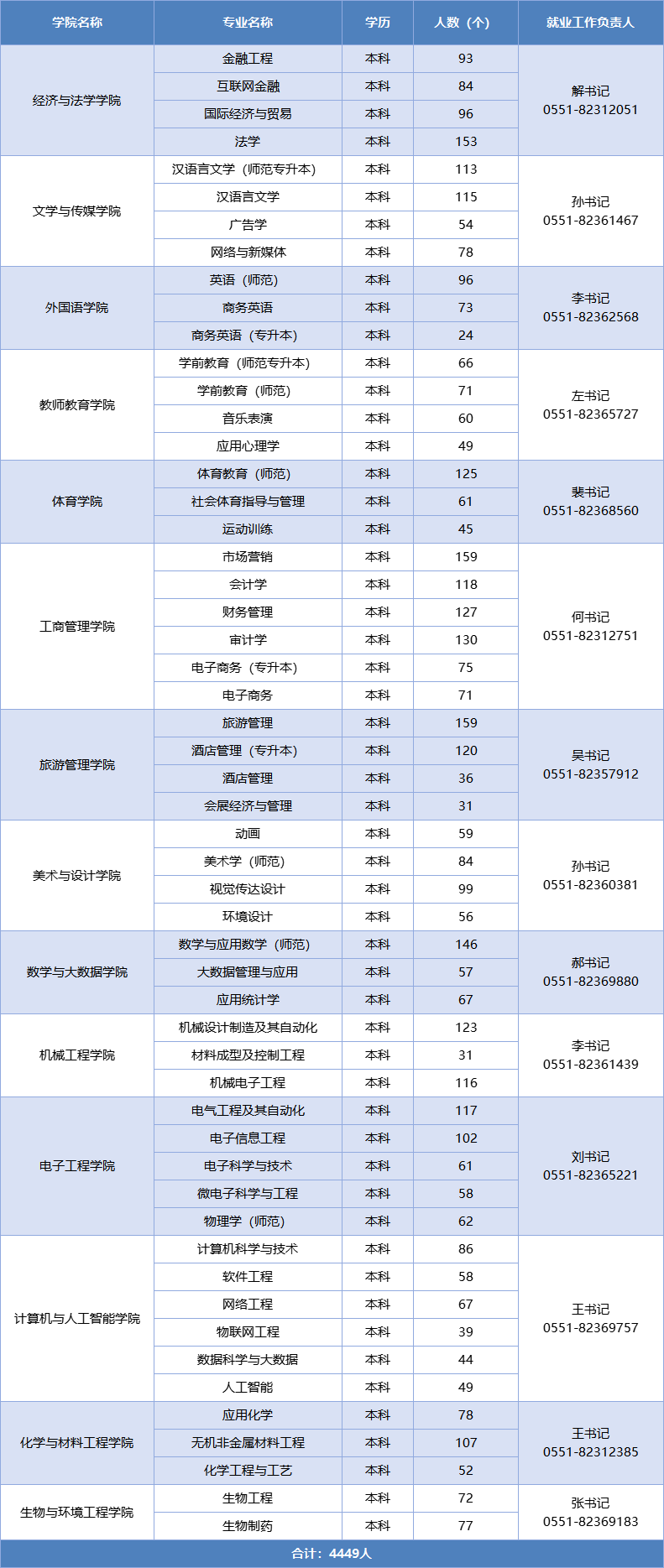 学校坚定“扎根合肥市、立足环巢湖、服务安徽省、融入长三角”发展道路,欢迎各地人社部门、人才服务机构、行业协会等来我校开展小而精、专而优的区域性、行业性组团专场招聘会。即日起,相关用人单位可以与就业指导中心或对口学院联系对接,商定招聘会具体安排。