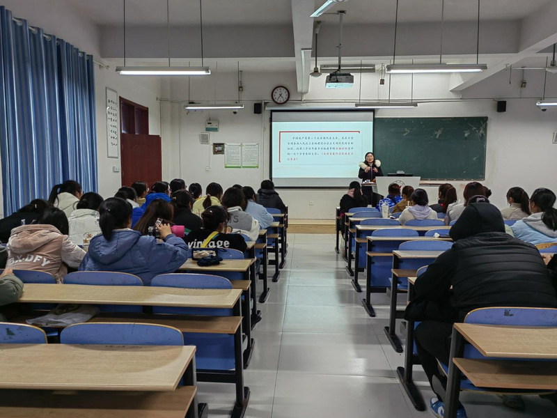 王倩结合自己学习党的二十大报告的体会,从深入理解党的二十大召开的时代背景、深刻领会党的二十大精神的内涵实质、充分认识党的二十大的重大意义、新时代青年的责任担当四个方面以青年学生听得懂、能领会的语言深入浅出地宣讲了党的二十大精神。党的二十大报告对全党抓好青年工作提出明确要求、对广大青年寄予殷切厚望,吹响了青年学子积极投身全面建设社会主义现代化国家火热实践的“动员号”“集结号”“冲锋号”。她勉励同学们增强历史主动,牢记殷殷嘱托,努力学习,勤于实践,不断筑牢信仰之基,锤炼政治品格,励志成才报国,树立投身国家重大战略和到祖国最需要的地方建功立业的职业观、事业观,以责任担当谱写奋进篇章,在接续奋斗中肩负起“请党放心 强国有我”的使命担当。