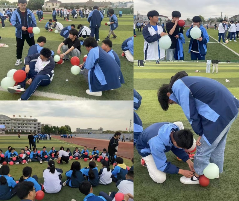 随后,“踩气球”游戏将本次团辅活动氛围推向高潮,学生们把自己的压力或烦恼全部化身为动力,吹进气球里,并把吹好的气球绑在自己脚腕处,比赛要求在保护自己脚腕上气球不被踩破的同时努力去踩破对方的气球。随着老师的一声令下,气球大战一触即发,整个场地瞬间陷入欢乐的“你追我赶”当中,气球爆破声此起彼伏,学生们的烦恼也随之烟消云散。